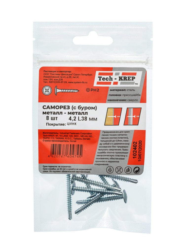 Саморез с п/ш св. 4,2х38 (8 шт) - пакет Tech-Krep