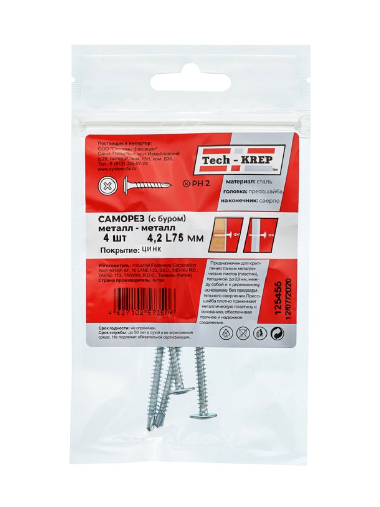 Саморез с п/ш св. 4,2х75 (4 шт) - пакет Tech-Krep
