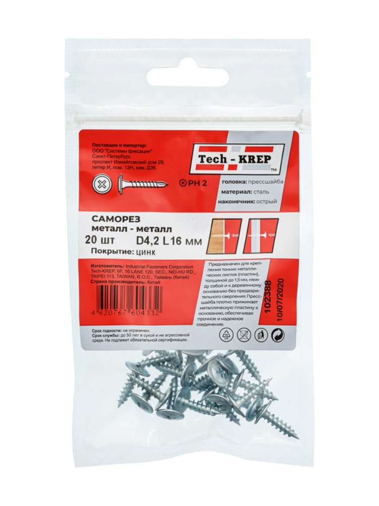Саморез с п/ш4,2х16 бел. (20 шт) - пакет Tech-Krep