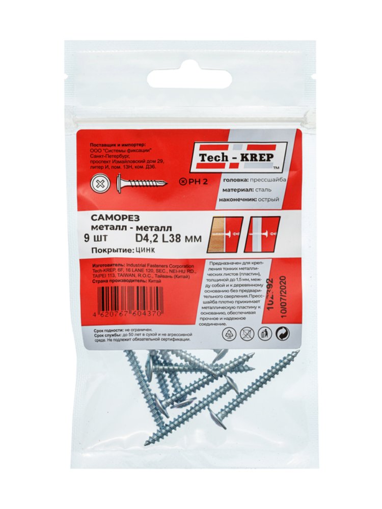 Саморез с п/ш4,2х38 (9 шт) - пакет Tech-Krep