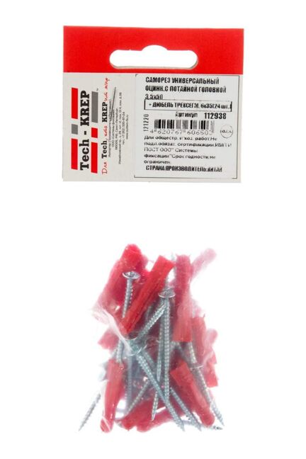 Саморез универс. цинк 3,5х50 пот. гол. + дюбель трехсегментный 6х35 (24 шт) - пакет Tech-Krep