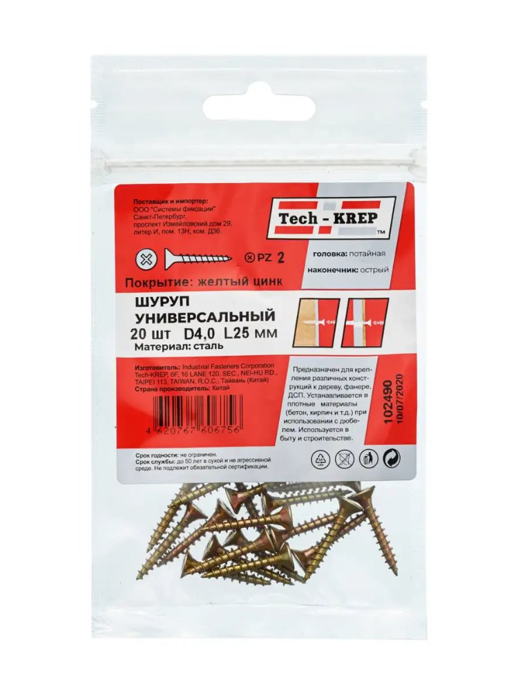 Саморез универс. желтый 4,0х25 пот. гол. (20 шт) - пакет Tech-Krep