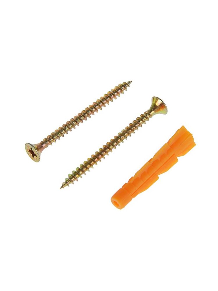 Надежное и простое решение для монтажных работ — саморезы с желтым покрытием и универсальные дюбели для крепления в бетон, кирпич, гипсокартон и другие прочные поверхности. Использование этого набора позволяет быстро и качественно фиксировать полки, элементы декора, инженерные коммуникации и строительные конструкции, обеспечивая длительную и безопасную эксплуатацию.