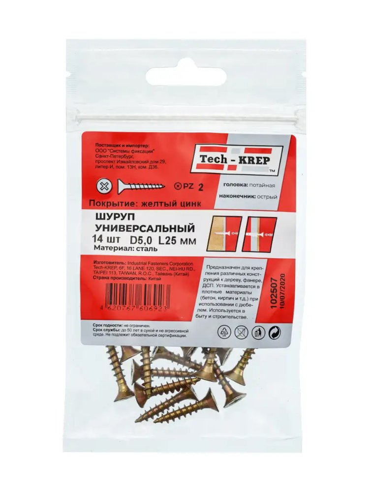 Саморез универс. желтый 5,0х25 пот. гол. (14 шт) - пакет Tech-Krep