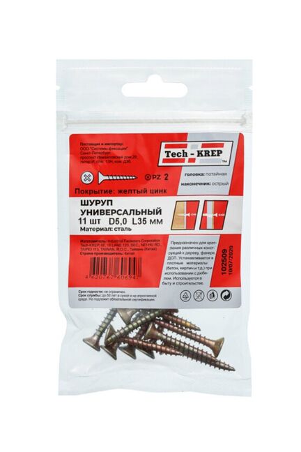 Саморез универс. желтый 5,0х35 пот. гол. (11 шт) - пакет Tech-Krep