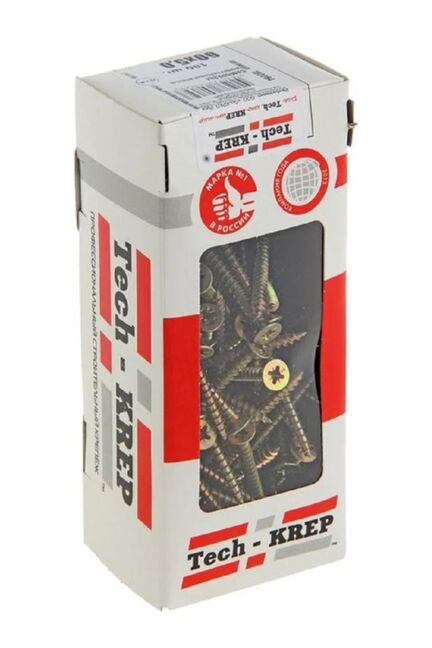 Саморез универс. желтый 5,0х60 пот. гол. (100 шт) - коробка с ок. Tech-Krep