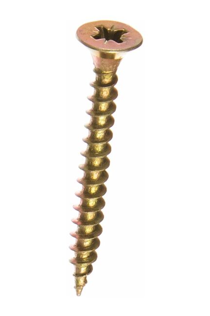 Саморезы 4,5×40 мм с защитным желтым цинком, крестовой шлиц, 6500 шт. Устойчивость к коррозии, универсальны для монтажа дерева и металла.