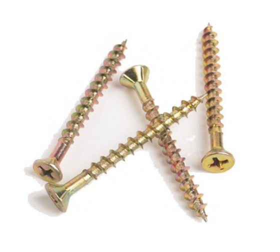 Универсальные стальные саморезы. Саморезы для крепления различных конструкций к дереву, фанере, ДСП. Универсальный саморез 4,5×60 мм с желтым цинком для прочного крепежа древесины и металла, устойчив к коррозии, фасовка 500/3000 шт.
