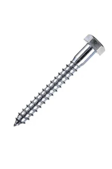 Крепкий оцинкованный шуруп для дерева и бетона, выдерживает высокие нагрузки, шестигранник, DIN 571, 12×180, упаковка 100 штук.