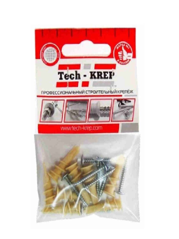 нейлоновые дюбели со сверлом для гипсокартона DRIVA PA 14,0х32 мм (8 шт.); саморезы с пресс-шайбой м