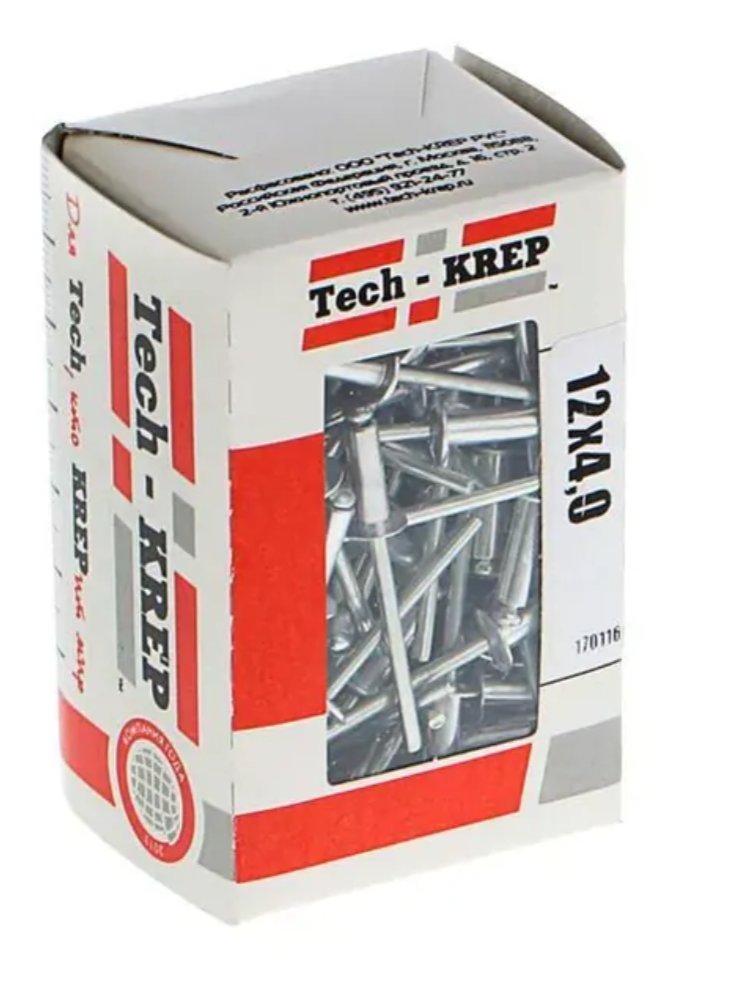 Заклепка 4,0х12 мм Tech-Krep, 100 шт. в коробке с окном. Прочный алюминиевый крепеж для неразъемных соединений тонких материалов. Надежно и удобно.