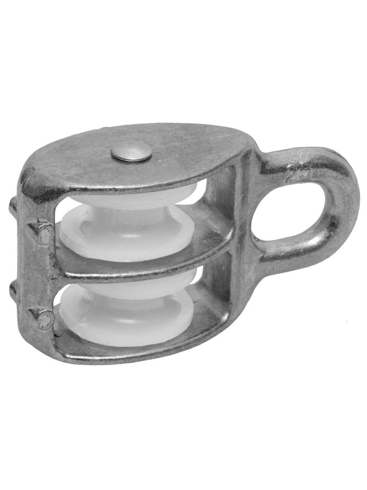 Двойной блок для троса Tech-Krep, оцинкованный, с нейлоновым шкивом 50 мм. Прочный, устойчив к коррозии, для тросов до 6 мм, нагрузка высокая.