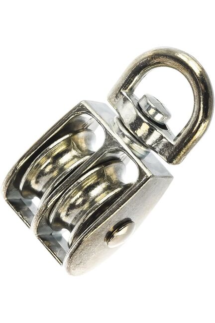 Двойной блок BK-Duplex металл применяется для изменения направления движения тросов, веревок и канатов, увеличения силы в грузоподъемном оборудовании. Прочный металлический блок на два ролика с диаметром 30 мм — идеален для такелажных и строительных работ, облегчает перемещение грузов.