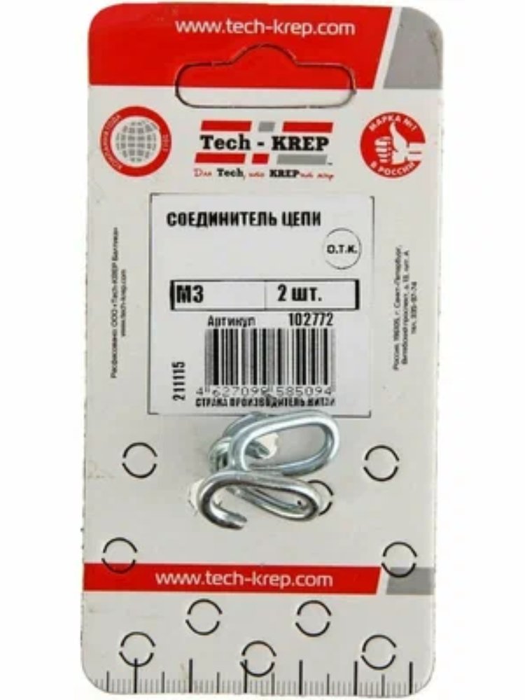 Соединитель цепи М3 (2 шт) от Tech-Krep представляет собой надежный крепежный элемент, предназначенный для соединения цепей с диаметром звена 3 мм. Изготовлен из прочной стали с антикоррозийным покрытием, что обеспечивает долговечность и устойчивость к внешним воздействиям. Конструкция соединителя позволяет легко и быстро соединять или разъединять цепи без использования дополнительных инструментов. Подходит для использования в различных условиях, включая повышенную влажность. Комплект включает два соединителя, что делает его удобным для выполнения нескольких задач одновременно.