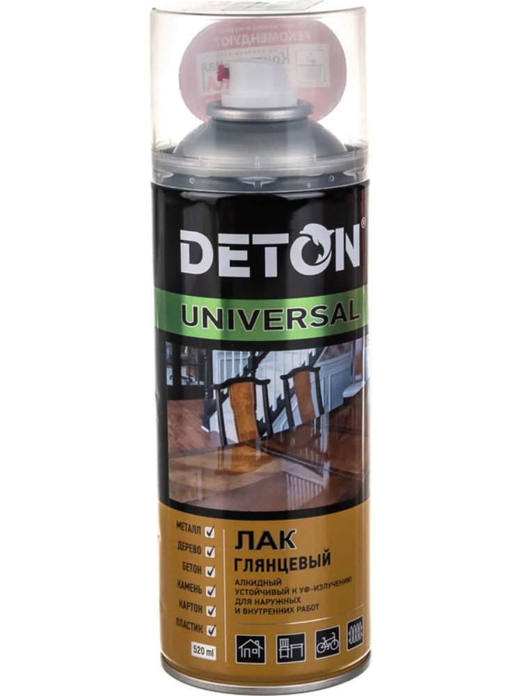 Аэрозоль лак алкидный Бесцветный глянцевый 520 мл DETON UNIVERSAL в Комсомольск-на-Амуре