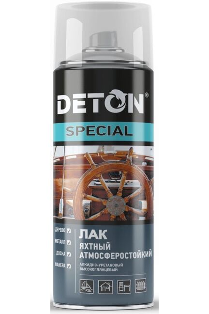 Глянцевый яхтный лак-спрей защищает дерево от влаги, УФ и истирания, подходит для наружных и внутренних работ, быстро сохнет и не желтеет.