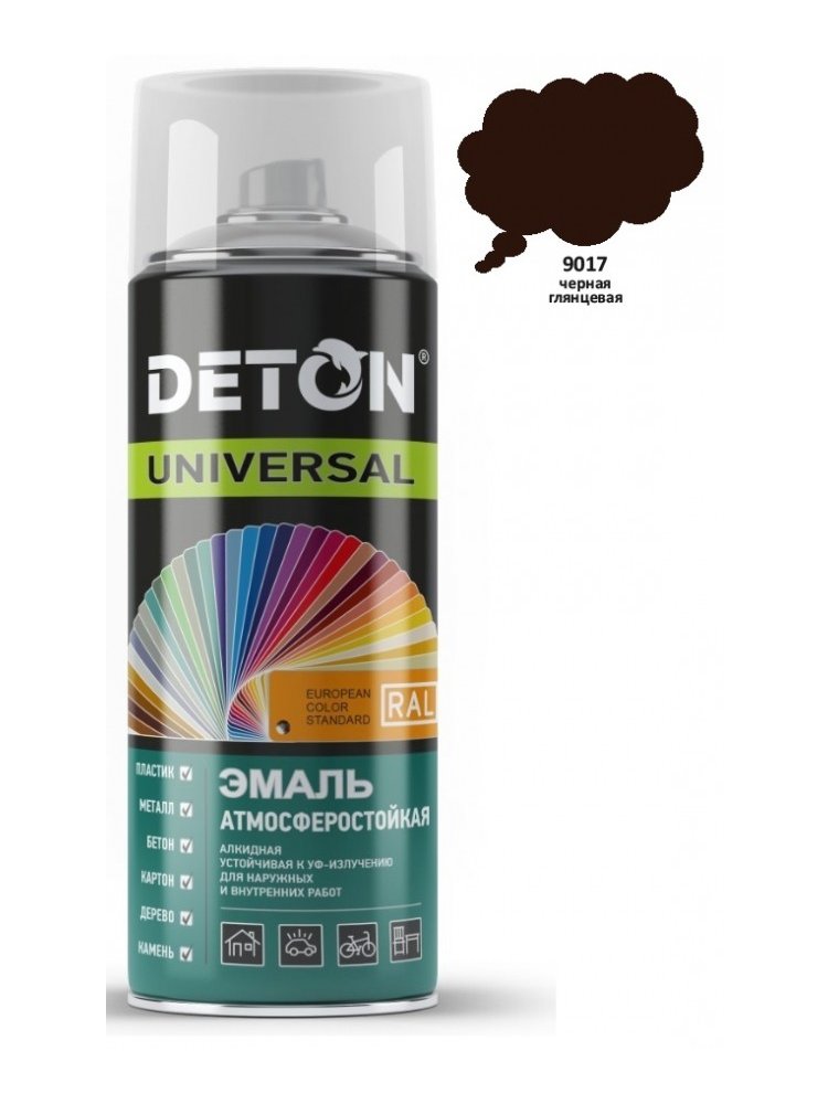 Аэрозоль эмаль алкидная (9017) Черная глянцевая 520 мл DETON UNIVERSAL в Комсомольск-на-Амуре