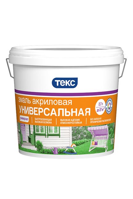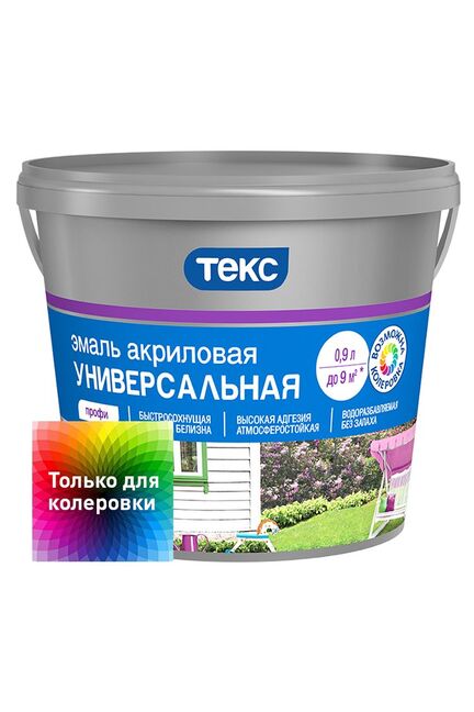Универсальная акриловая эмаль для внутренних и наружных работ, глянцевая, база D под колеровку, быстро сохнет, устойчива к истиранию и влаге.