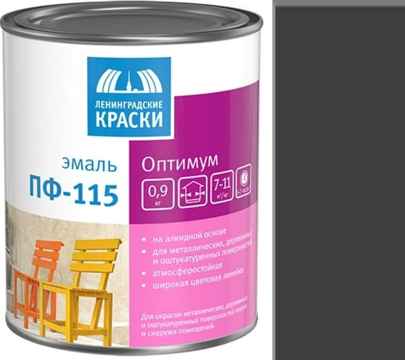 Эмаль ПФ-115 Черная глянц. д/металла и дерева 0,9кг ТЕКС