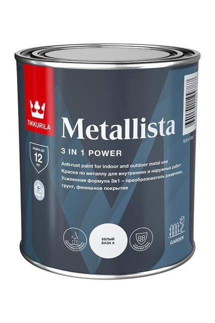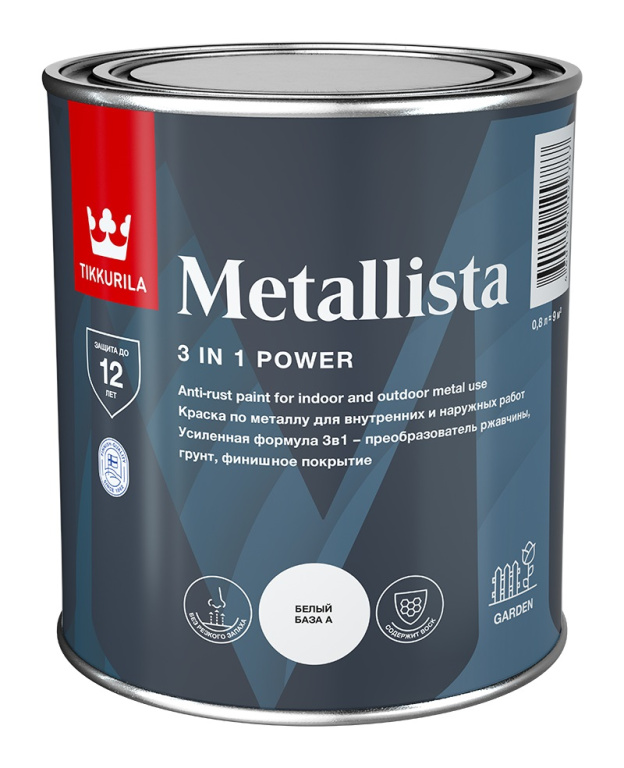 Специальная атмосферостойкая краска по ржавчине для внутренних и наружных работ, сочетает в себе свойства преобразователя ржавчины, антикоррозионной грунтовки и декоративного финишного покрытия. Стальные и чугунные конструкции, садовая мебель, гаражи, ограды, решетки и т.п. Не применяется для полов и ступеней лестниц.Глянцевый. Расход 10–13 м²/л. Время высыхания: 10 часов (базы: А, С / готовые цвета: черный, зеленый, темно-серый, темно-коричневый); 16 часов (готовые цвета: золотистый, серебристый), от пыли - 2 часа.