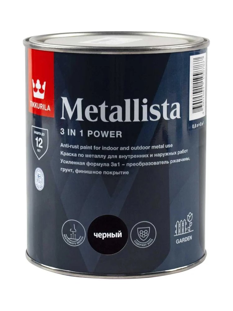 Грунт-эмаль по ржавчине METALLISTA черная. глянц. 0,8кг Tikkurila