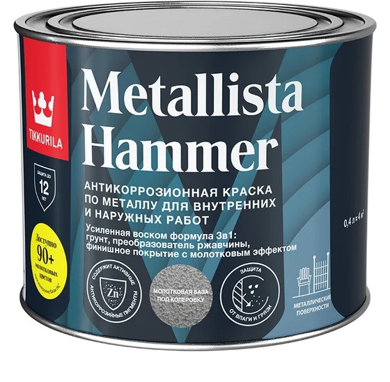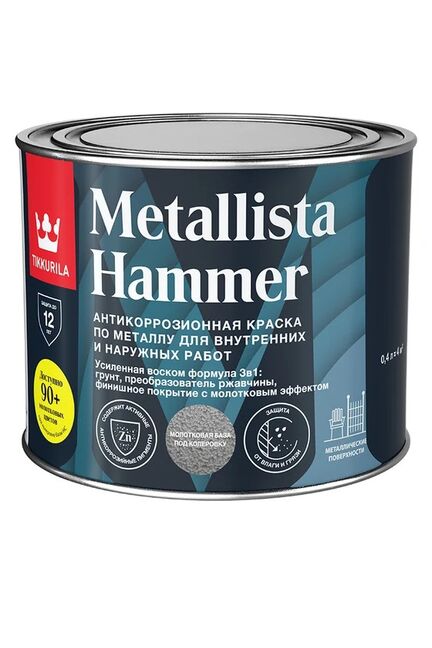 Специальная атмосферостойкая краска по ржавчине для внутренних и наружных работ, сочетает в себе свойства преобразователя ржавчины, антикоррозионной грунтовки и декоративного финишного покрытия. Стальные и чугунные конструкции, садовая мебель, гаражи, ограды, решетки и т.п. Не применяется для полов и ступеней лестниц.Глянцевый. Расход 10–13 м²/л. Время высыхания: 10 часов (базы: А, С / готовые цвета: черный, зеленый, темно-серый, темно-коричневый); 16 часов (готовые цвета: золотистый, серебристый), от пыли - 2 часа.