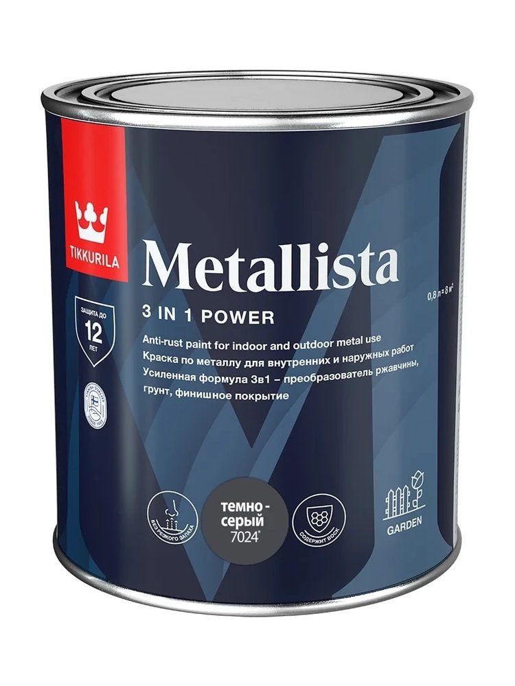 Грунт-эмаль по ржавчине METALLISTA темно-серая глянц.0,8кг Tikkurila