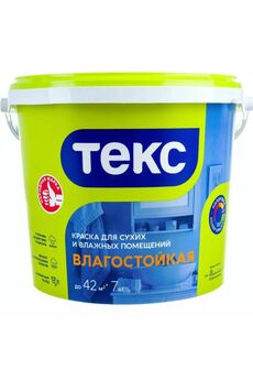ТЕКС Влагостойкая матовая краска, устойчива к мытью, быстро сохнет, без запаха, для стен и потолков, для влажных помещениях.