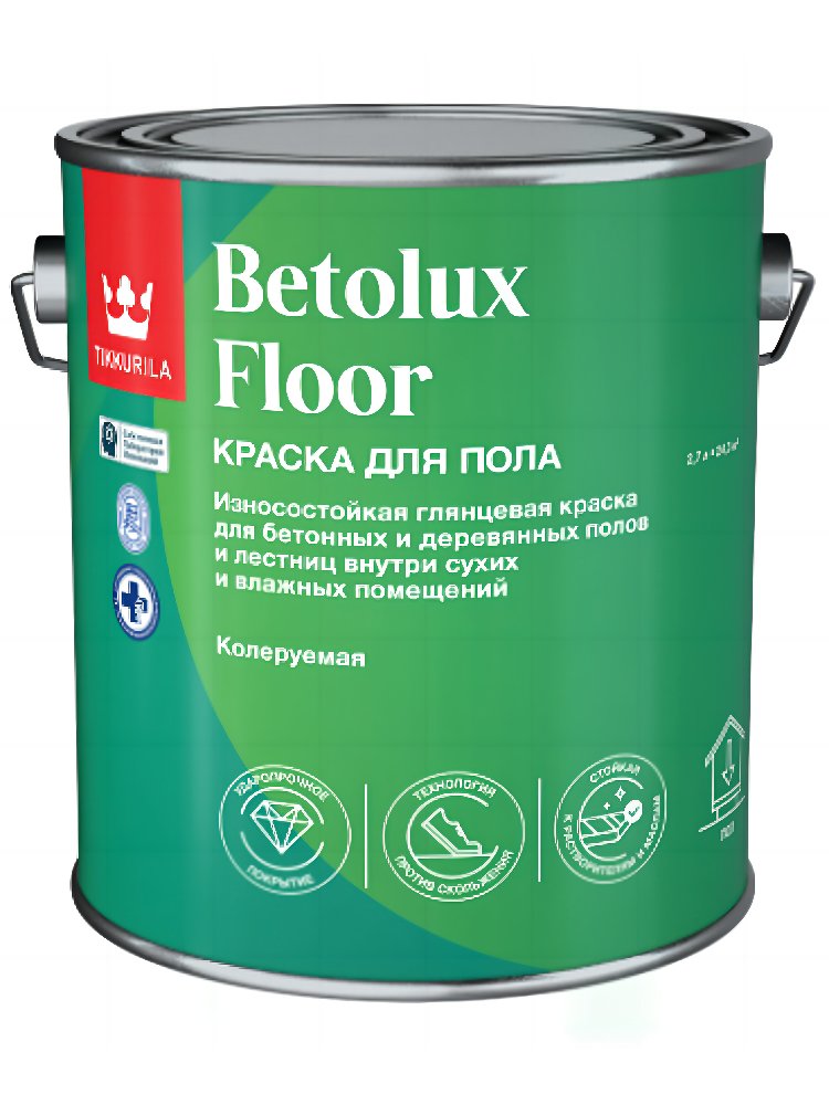 Откройте новые возможности обновления вашего интерьера с износостойкой эмалью для пола BETOLUX FLOOR A глянцевая 2,7 л Tikkurila – идеальный выбор для долговечного и стильного покрытия деревянных и бетонных полов в жилых и коммерческих помещениях.