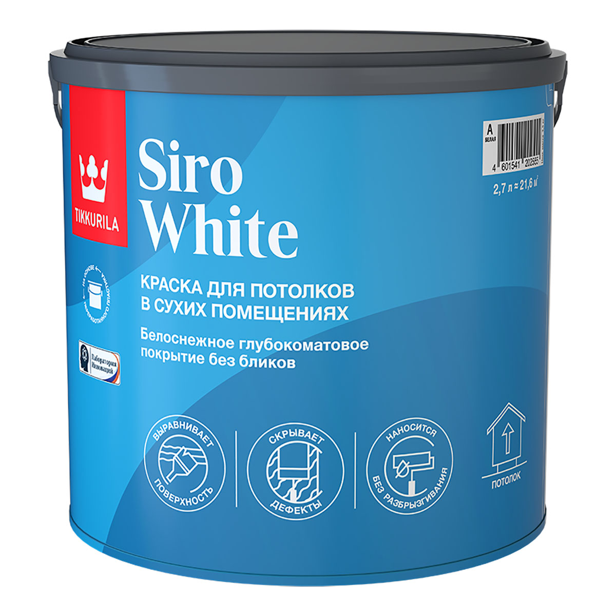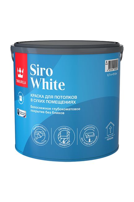 Матовая краска для потолков, белоснежный цвет, высокая укрывистость, минимальный расход, быстро сохнет и легко наносится. Объем 9 л.
