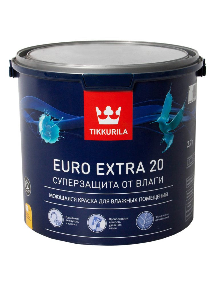Краска для влажных помещений EURO EXTRA 20 A п/мат 2,7л Tikkurila