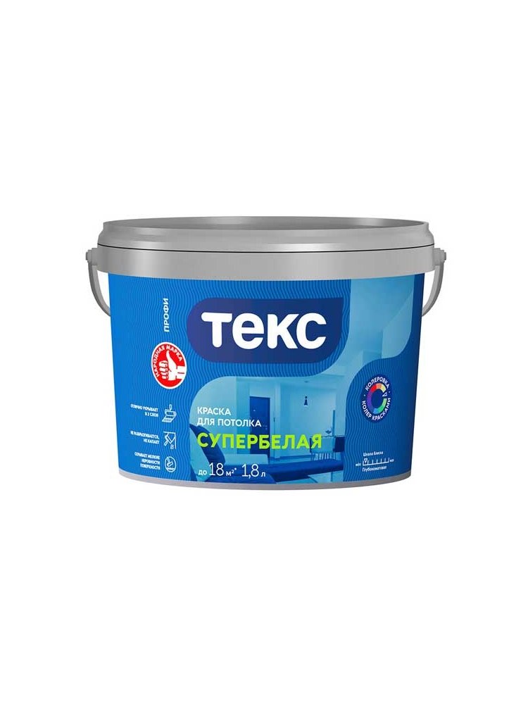 Краска ВД д/потолков с/бел. 1,8л Профи ТЕКС