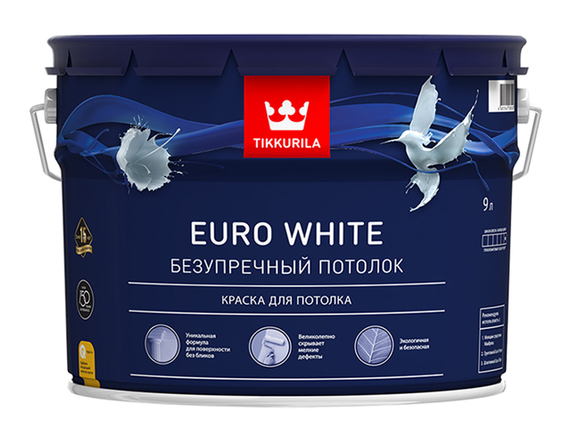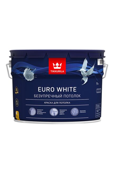 Краска ВД для потолка EURO WHITE белая гл/мат 9л Tikkurila