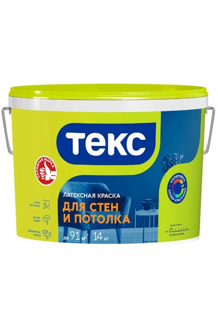 Краска ВД Интерьерн. б/снежн. д/стен и потол. 14кг латексная ТЕКС
