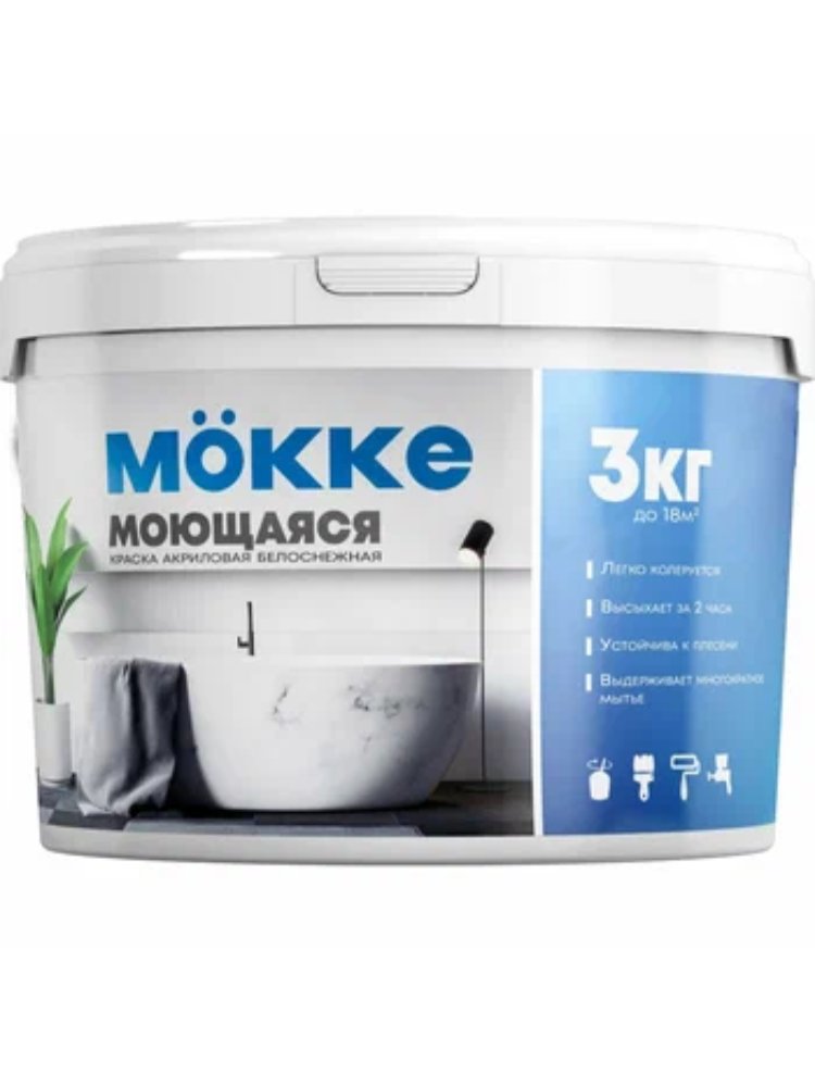 Краска ВД моющаяся б/снеж. 3кг акрил. MOKKE в Комсомольск-на-Амуре