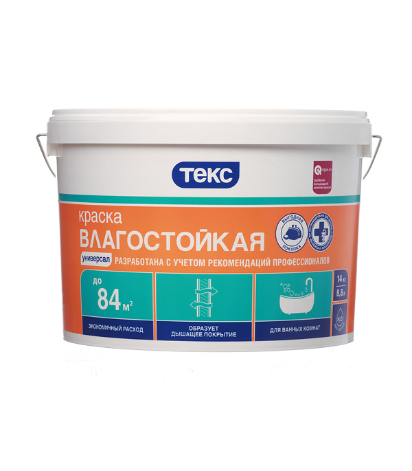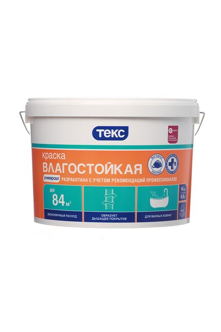 Влагостойкая матовая краска, устойчивая к мытью и истиранию, подходит для влажных помещений, легко наносится, без запаха, экономичная.