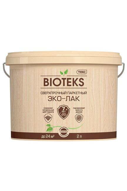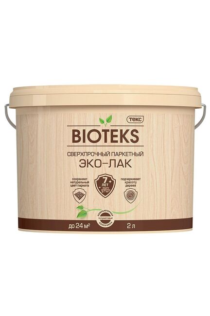 Прозрачный водный лак, 2 л, с глянцевым блеском. Быстро сохнет, не желтеет, устойчив к истиранию и влаге. Подходит для дерева и паркета.