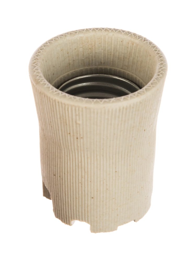 контактная группа изготовлена из электротехнической латуни конструкция патрона обеспечивает надежный контакт с цоколем ламп Керамический патрон E40 для мощных ламп, выдерживает до 250°C, подходит для промышленности, складов, уличных и технических помещений.