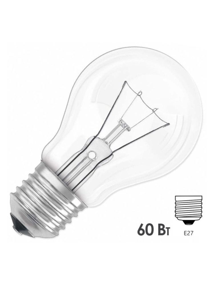 Лампа 60Вт с цоколем E27, тёплый свет, срок службы до 1000 часов. Подходит для большинства светильников, легко устанавливается.