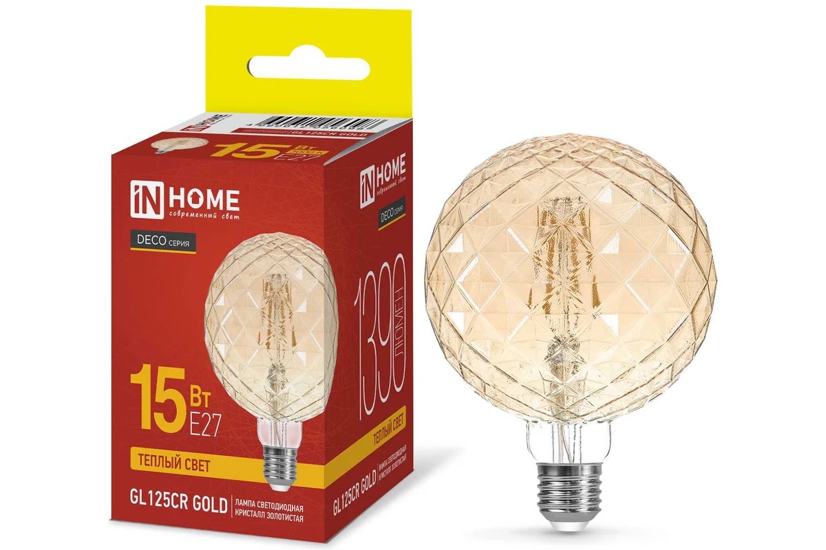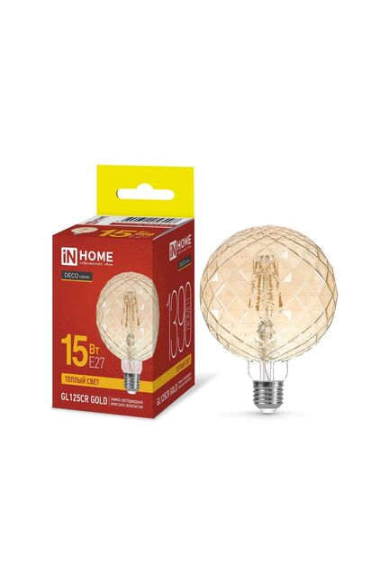 Лампа филаментная LED-GL125CR 15Вт 230В E27 3000K 1390Лм кристалл золотистая IN HOME