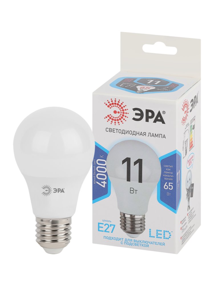 Лампа светодиодная LED-A60 11Вт 230В 4000К 880Лм Е27 ЭРА в Комсомольск-на-Амуре