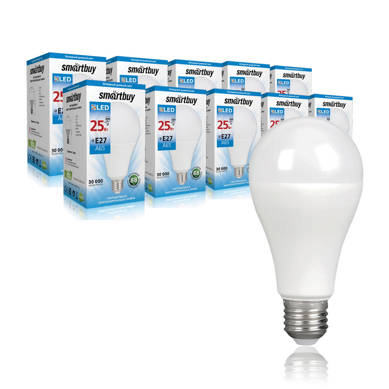 Лампа светодиодная LED-A65 25Вт-6000K-E27 Smartbuy