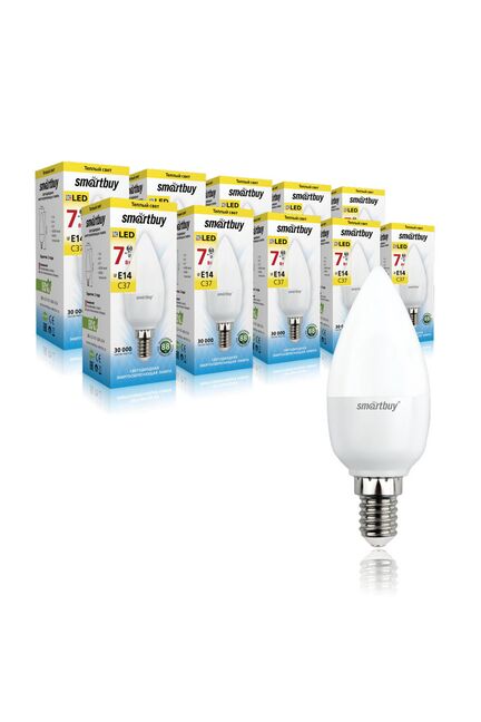 Энергоэффективная светодиодная лампа 7 Вт, E14, 3000K, тёплый свет, высокая яркость, срок службы до 30 000 ч, устойчива к перепадам напряжения.