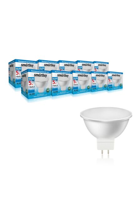 Экономичная LED-лампа 5 Вт GU5.3, 6000K холодный свет, долгий срок службы, не мерцает, безопасна для глаз, идеальна для точечного освещения.