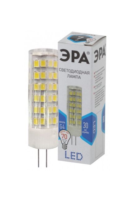 Светодиодная лампа ЭРА LED smd JC-7w-220V-corn - современный, качественный и доступный источник света. Позволяет экономить до 90% электроэнергии по сравнению с лампой накаливания с аналогичным световым потоком. Светит ярким белым светом, который максимально приближен к естественному дневному. Идеальна для ежедневного применения в быту. Мгновенное включение. Ровное освещение. Можно использовать как с люстрами, так и со светильниками, в том числе настольными и бра. Экономичная светодиодная лампа 7 Вт G4, 220 В, 4000 К, 560 лм — для декоративных светильников и подсветки. Долговечная, яркая, энергоэффективная.