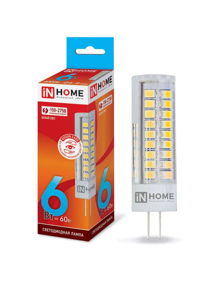 Лампа светодиодная LED-JCD 6Вт 230В 6500К 570Лм G4 IN HOME в Комсомольск-на-Амуре