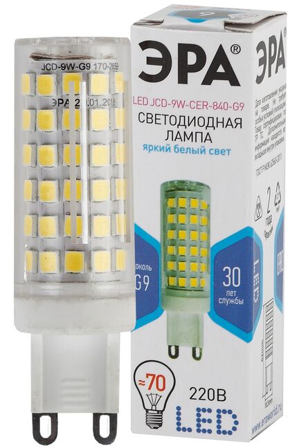Лампа светодиодная LED-JCD 9Вт 230В 4000К 720Лм G9 CER ЭРА в Комсомольск-на-Амуре