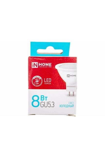 Светодиодная лампа GU5.3, 8Вт, 6500К, 600лм: яркий холодный свет, экономия до 80%, долговечность и безопасная работа для любых помещений.