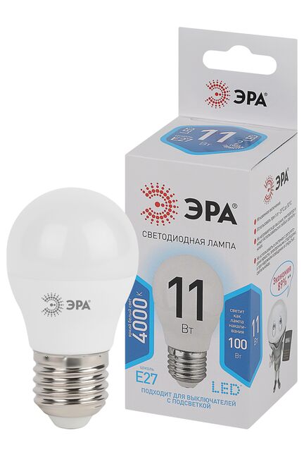 Лампа светодиодная LED-ШАР 11Вт 230В 4000К 880Лм Е27 ЭРА в Комсомольск-на-Амуре