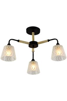 Размеры: (Д*Ш*В) 640*640*260 мм 3-ламповая люстра E27, чёрный/бронза, до 60 Вт, для дома и офиса. Универсальный дизайн, стекло и металл, подходит для большинства интерьеров.